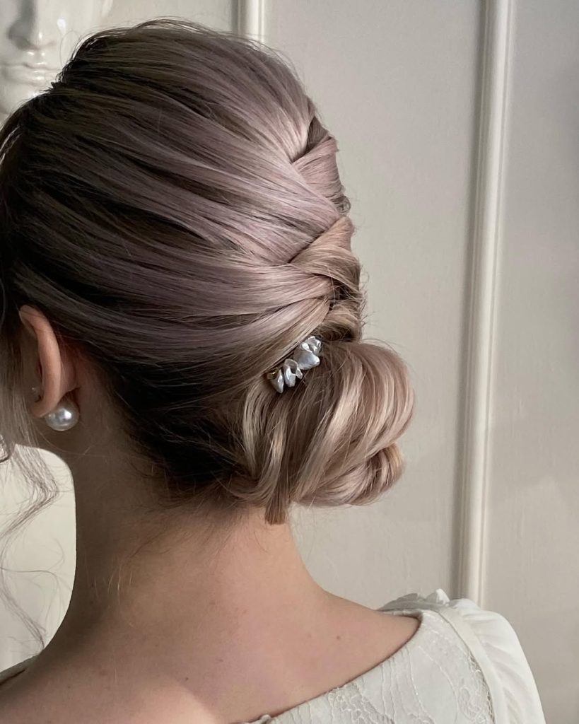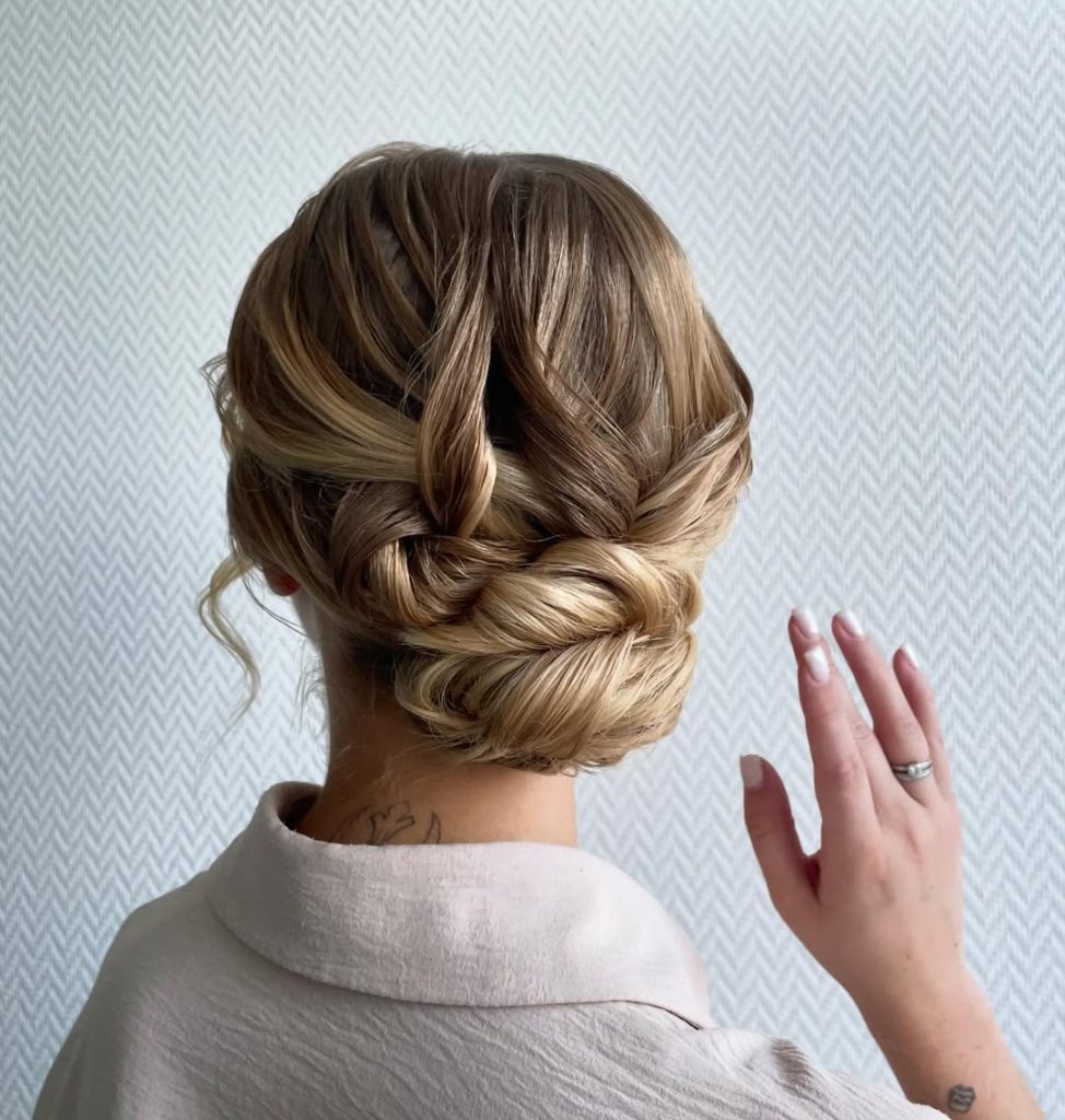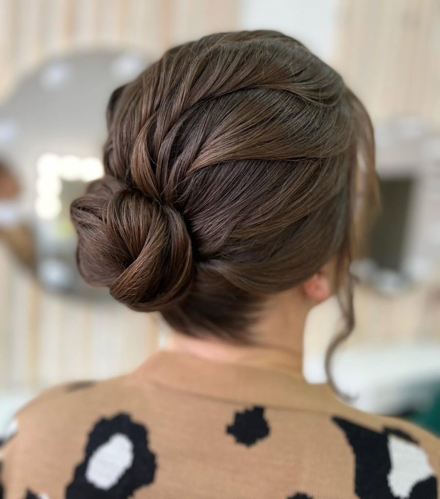 How to style: Roll the twist first, pin invisibly, then coil the ends into a small bun. Finish with a flexible hold so movement remains.