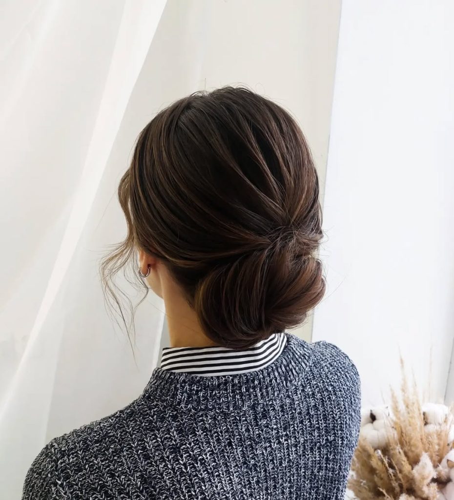 A clean, centered coil sits just above the nape with a satin—not wet—shine. It’s the epitome of quiet luxury for medium hair: refined lines, no visible pins, and zero fuss. Why it’s a keeper: works for boardrooms, museum dates, and courthouse wedding ceremonies. The silhouette is deliberately simple, which makes it timeless for 2026 and beyond.