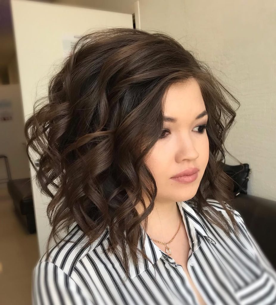 Voluminous Curly Lob With Side Lift