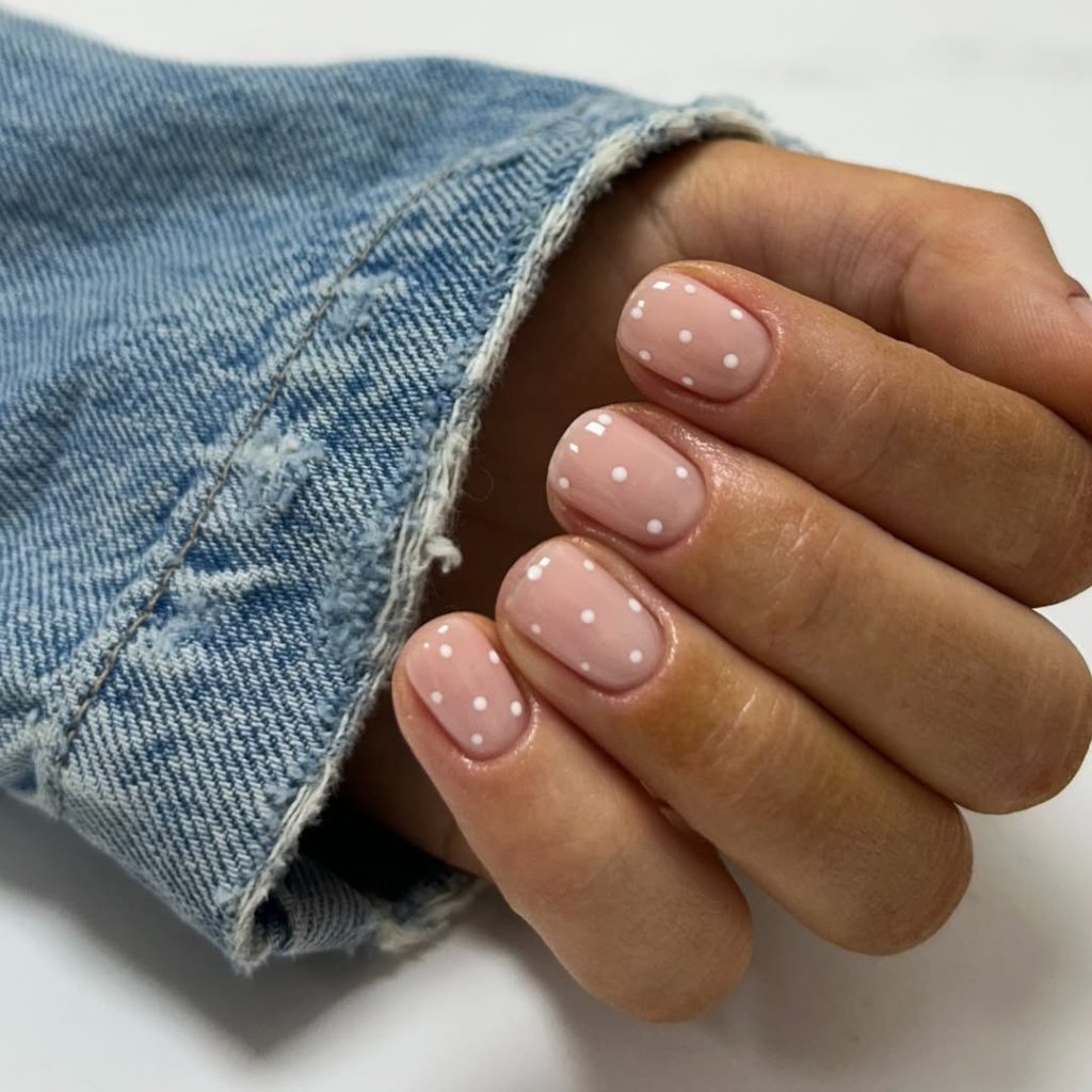 If you’re someone who lives in denim and oversized shirts, this manicure slips right into your everyday style. The dots add just enough design interest to peek out from a cuffed sleeve without shouting for attention. Many manicurists achieve this kind of natural finish using BIAB overlays, which strengthen the nail while preserving that “my nails but better” look that beauty editors keep raving about for 2026.