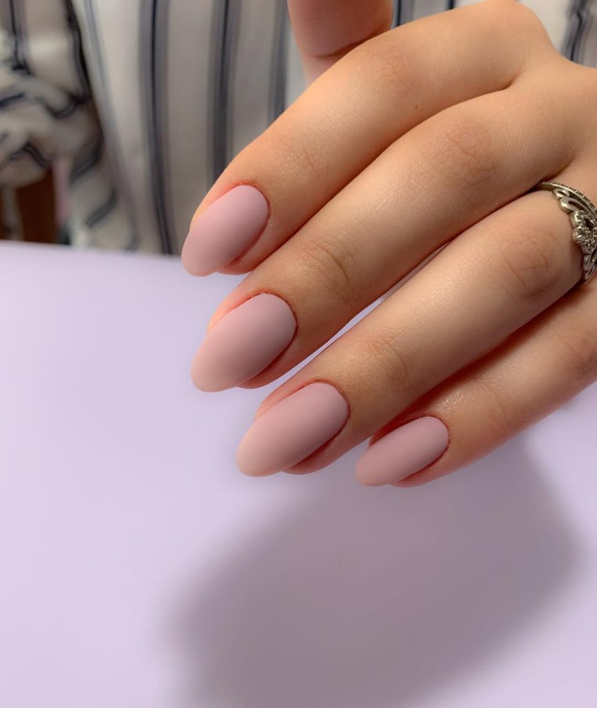 This look defines quiet luxury. Soft, creamy, nude velvets and elongated almond nails with a soft, diffused edge. The matte finish turns a simple nude pink into something fashion-forward; it almost looks like suede on the hands. Because there’s no shine, every ridge and curve of the nail shape becomes the focus, which is why a clean cuticle line matters so much here.
