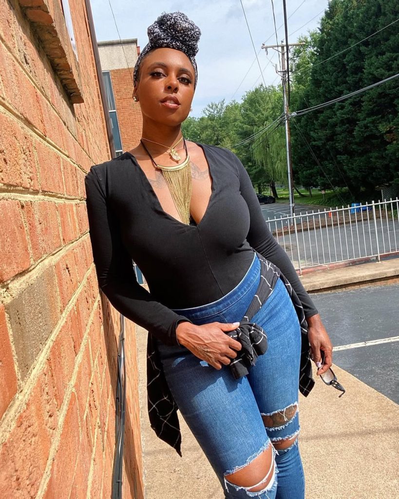 This combo works for those days when you want to feel powerful but unfussy—errands, coffee dates, or outdoor evening hangs. The plunging neckline lets jewelry shine, so keep the metal tones cohesive. If you’re heading into fall, slip on a leather moto jacket and ankle boots. For colder months, you can swap the bodysuit for a black high-neck knit to keep the same silhouette while making it winter-ready. Avoid overly busy belts or loud bags; the necklace and distressed denim already carry the drama.