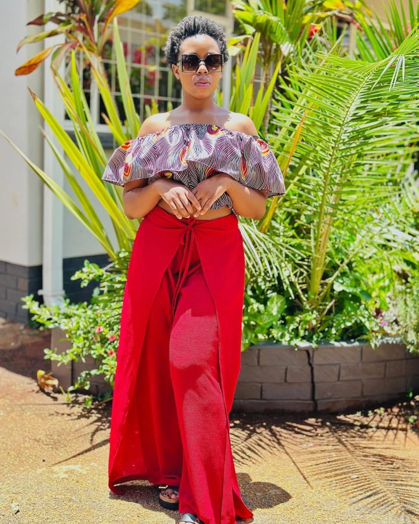 There’s a celebratory energy here, which is ideal for outdoor concerts, day birthday celebrations, or cultural festivals. Dark red is a perfect fit for late summer and warm fall days. With matching jewelry, it is possible to shift into a more relaxed party vibe. When it comes to themed events, the off-shoulder and red pants can pair together to create a low-effort glamorous Halloween outfit with gold accessories and a dark lip. To personalize, layer bangles or add a waist chain. Avoid competing prints on bags or shoes; a neutral clutch or straw tote keeps the focus on the top and trousers.