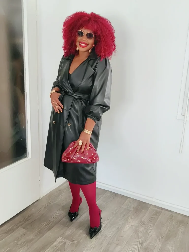 This outfit is a master class in color repetition: red at the top, middle, and bottom for cohesion. Wear it to brunch, weekend shopping runs, or casual meetups that might stretch into evening drinks. The knit cardigan makes it perfect for fall, and with a thermal layer underneath, you’re close to winter-ready too. Swap the jeans for tailored trousers, and you’re flirting with creative business casual. For a twist, you could replace the cardigan with a fitted black high-neck sweater while keeping the red accessories. Avoid adding a fourth bold color; the red and denim palette is strong enough on its own.