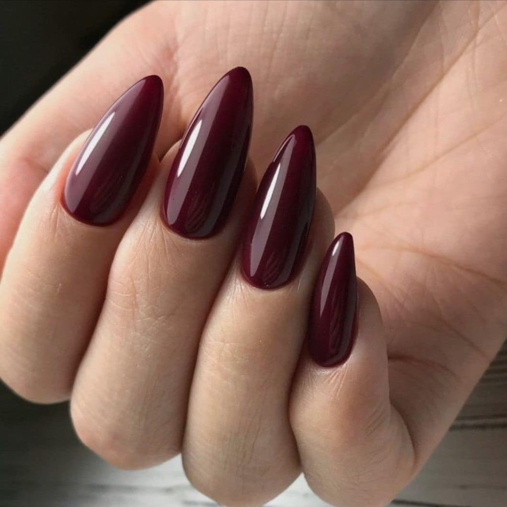 Deep Burgundy Almond Nails for a Polished Spring Look