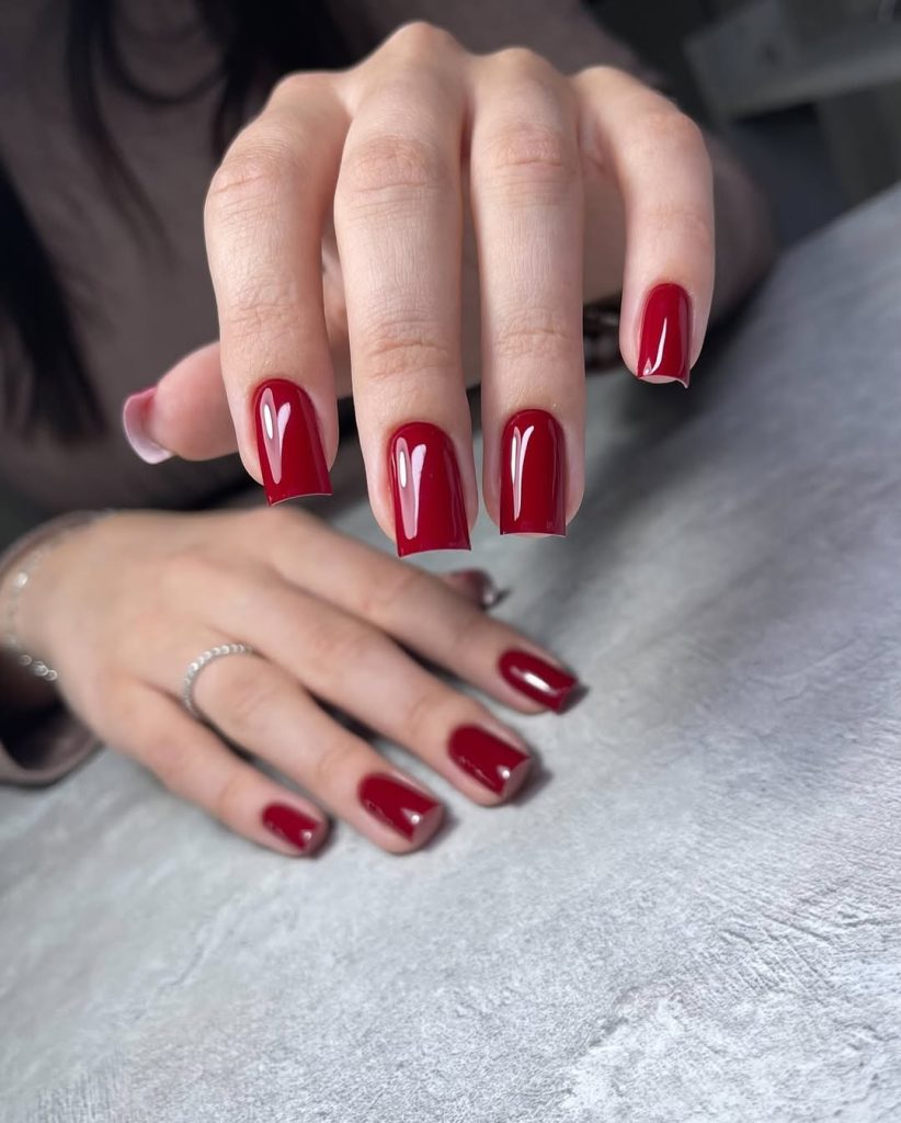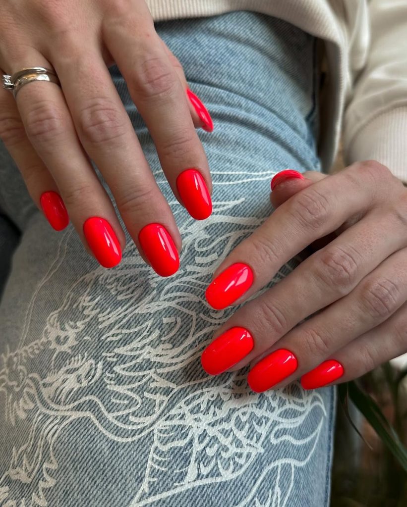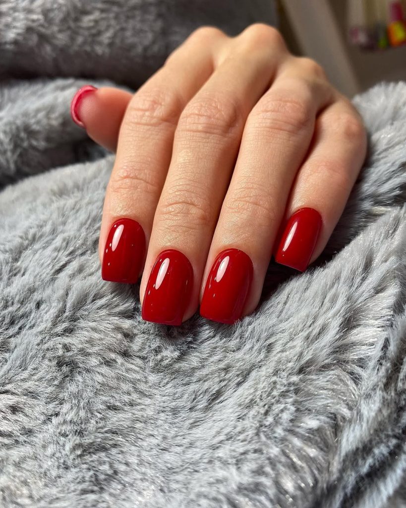 Red never truly leaves the trend cycle, but in 2026, it returns in a more refined, solid form. These short nails feel practical yet undeniably polished. The high-shine finish elevates the look, making it suitable for everything from casual knitwear to evening looks. Fashion editors often note that a classic red manicure is one of the easiest ways to look pulled together—and this version proves that point beautifully.