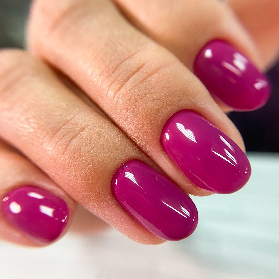 This bold hot pink manicure feels unapologetically modern for spring 2026 solid color nails. The elongated almond shape balances the intensity of the shade, keeping the look sleek rather than overwhelming. It’s a color that instantly lifts neutral outfits—think black blazers, soft gray knits, or classic denim. While undeniably pink and fun, the clean application prevents it from being too much. This look is particularly good on pale skin tones, as it gives contrast and warmth with little or no effort.