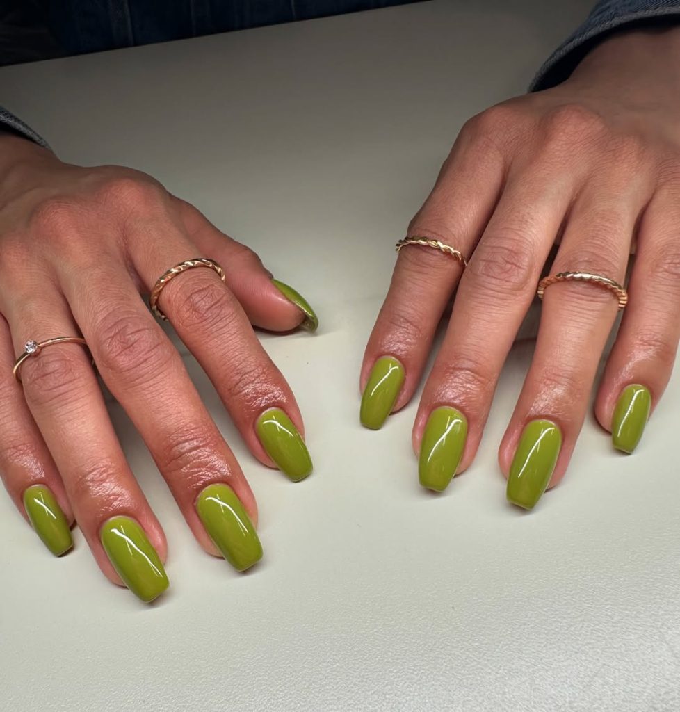 Green is undoubtedly having a moment this spring; we are especially loving the fresh, grassy hue that feels very now. The short nails make this mani super wearable, and the shiny topcoat makes the color pop. This style is great for neutral clothes, and these nails make the perfect amount of contrast. It’s a fearless but friendly way of rocking green in the spring of 2026, especially for women drawn to nature-inspired palettes.