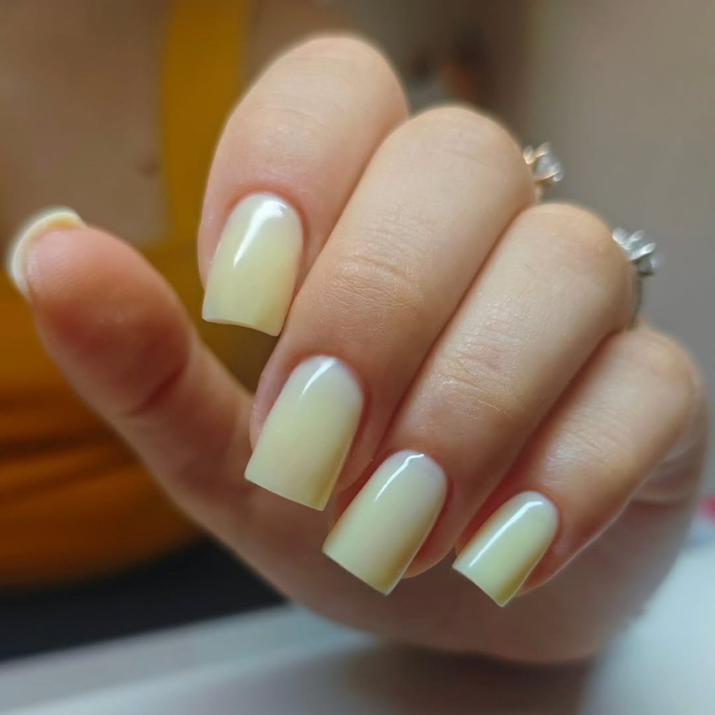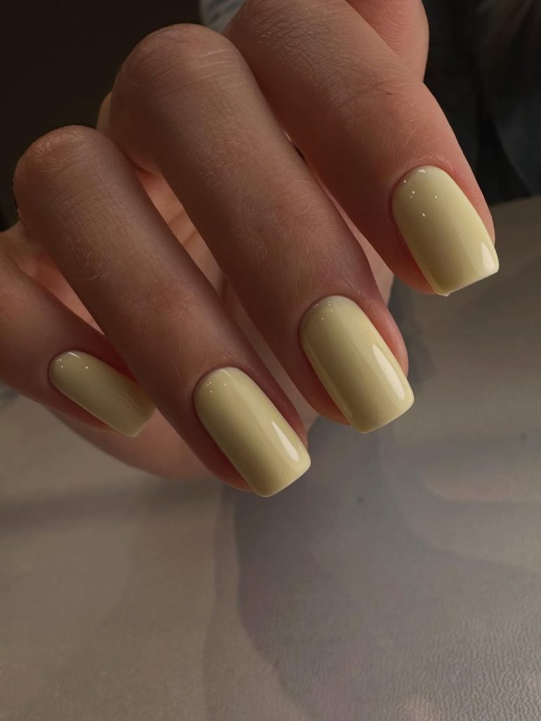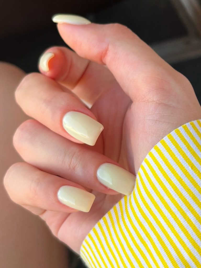 Milky Yellow Cream Nails with a Fresh Spring Glow