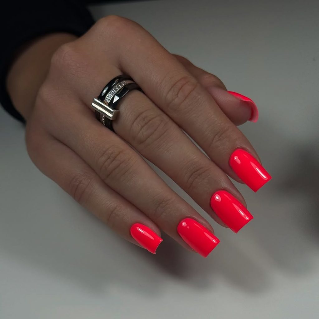 A vivid red manicure like this proves that solid color still holds serious power. The square shape keeps the look strong and contemporary, while the glossy finish enhances the intensity of the red. In spring 2026, solid-color nails, especially red, look less like a seasonal nonconformist and more like a self-assured classic. This manicure is the ideal complement to a neutral outfit, serving as a statement accessory without needing any other embellishments.