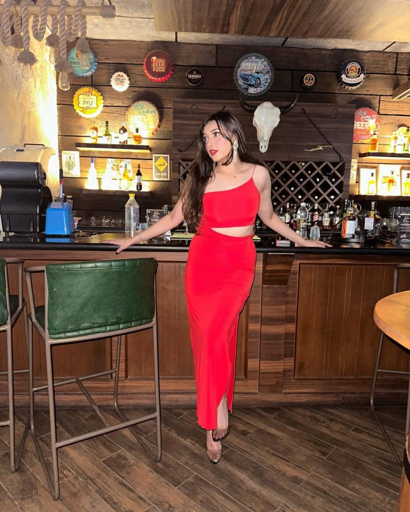 When the plan involves dim lights, a favorite bar, and a little drama, a scarlet cutout gown is pure 2026 fantasy—bold, sleek, and unapologetically party-ready.