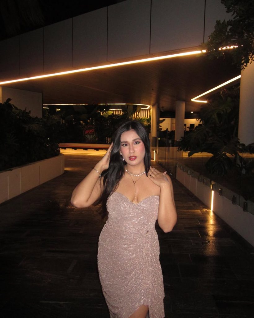 This look is made for intimate shoots, an 18th or 20th celebration, or a low-key gathering where you still want high-impact glamour. Add a sheer shawl or a cropped blazer for a slightly more aesthetic modest feel, or lean into sparkle with crystal heels. I’d skip heavy necklaces; the bare neckline is the star and keeps the vibe light, romantic, and effortlessly aesthetic.