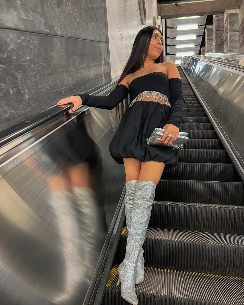 This getup exudes main character vibes and is perfect for club outings, rooftop parties, and group dinners, especially if you’re turning 21 or partying Barbie-style. This ticks all boxes of that aesthetic teen paradise while also not lacking mainstream appeal enough for women in their mid-twenties who want to go all out. I’d keep outerwear simple: a neutral trench or faux-fur jacket in a soft tone so the sequins stay in focus. Avoid busy patterns or extra-bright accessories; the goal here is unapologetic shine, not visual overload. This is the kind of look that dominates birthday pics long after 2026.