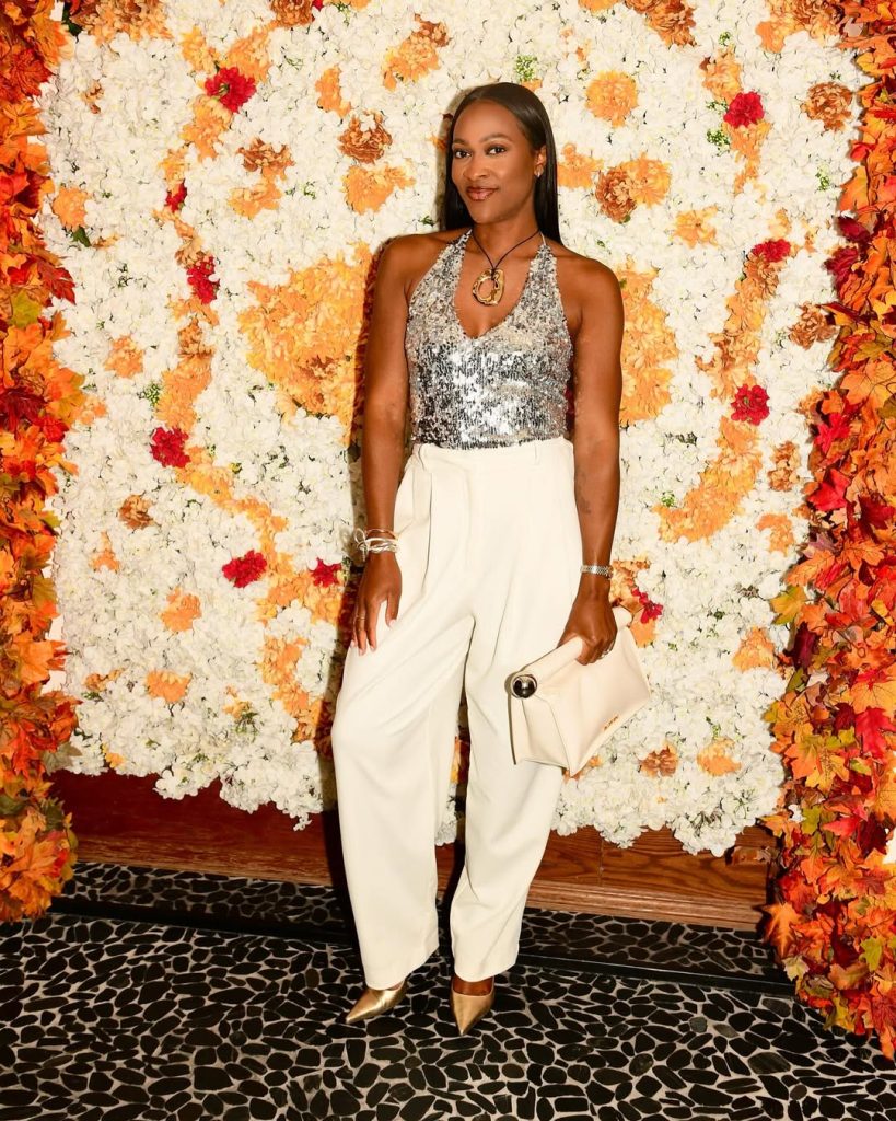 This look is especially striking on Black women, giving serious editor-approved energy while still feeling wearable for women of many ages. It’s perfect for birthday celebrations that start with cocktails and end on a dance floor. Add a blazer for classy winter nights or go without for warmer summer evenings. I’d avoid overly bright accessories—letting the sequins and tailored lines hold the spotlight keeps it chic.