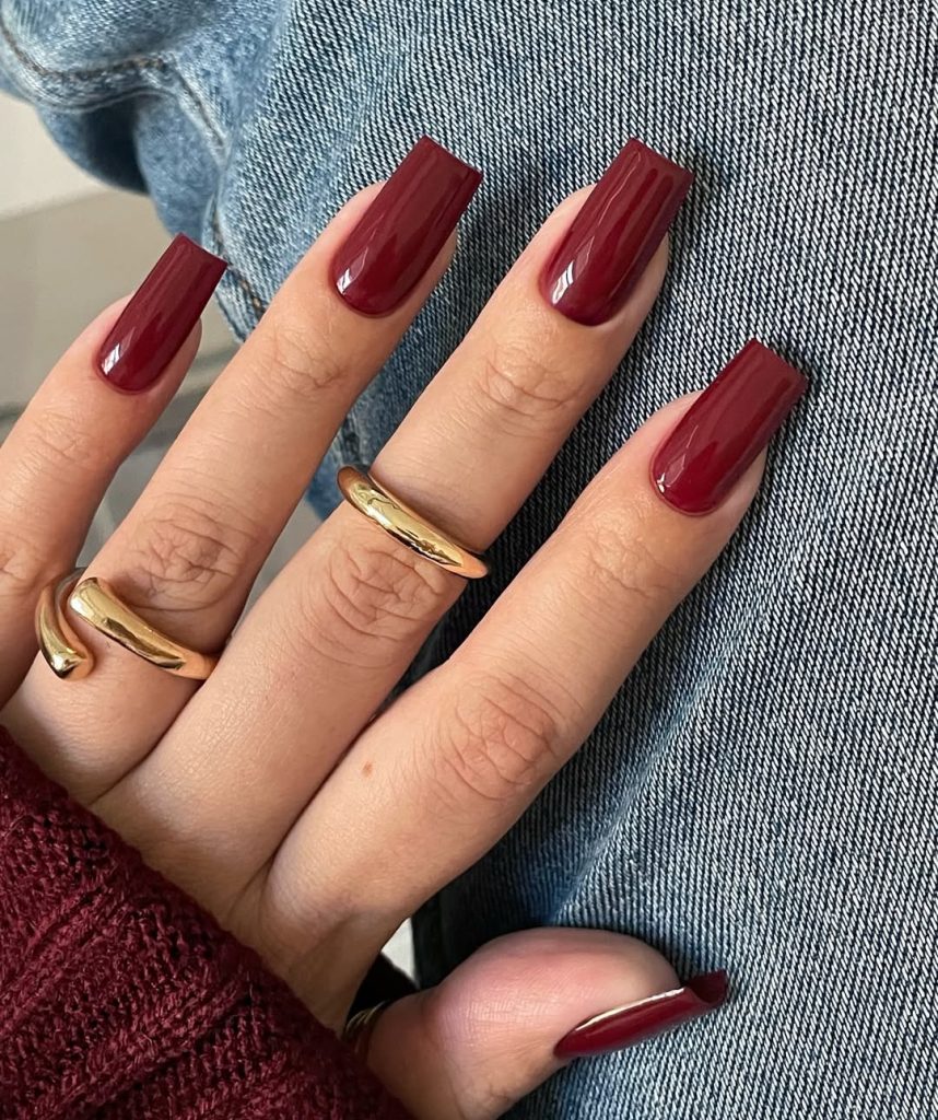 Wear it: Lean into tonal styling—burgundy knit, vintage denim, chunky gold rings. A power manicure for presentations and dinners alike.