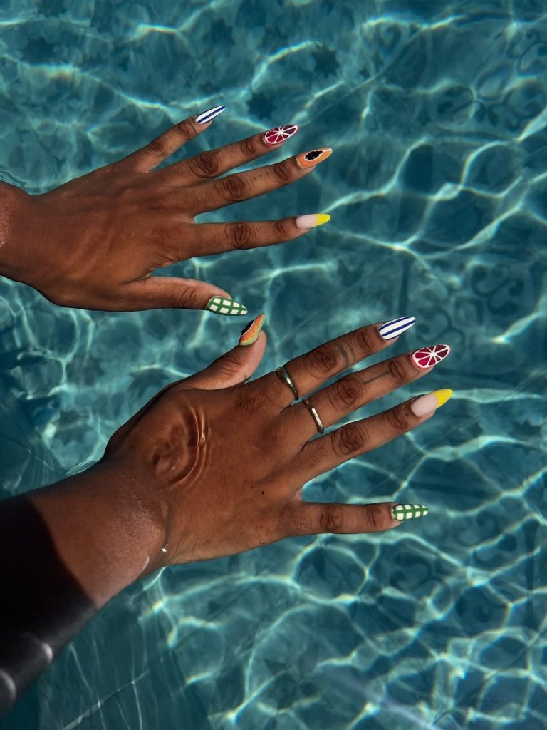 Poolside Mix-and-Match Nails With Citrus Slices, Stripes, and Gingham