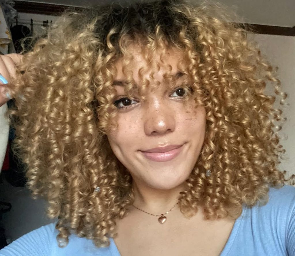 Invest in a color-safe shampoo and hydrating mask to keep the blonde from drying out. A small amount of curl cream will help maintain definition throughout the day.