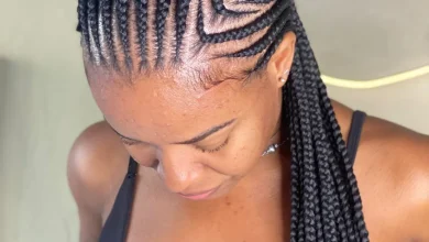A combination of glam braids and straight-back parting leads into an airy puff made of loc texture. Although it is useful, it has an edgy twist. Scraped surfaces and loose designs come together smoothly — providing both shape and comfort.